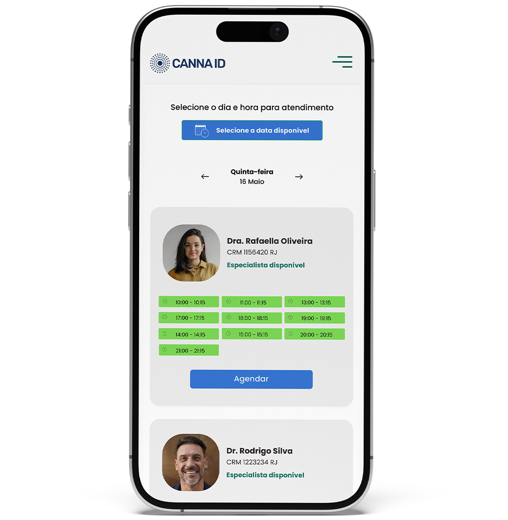 Ao ser incluído na rede CANNAID, você amplia sua visibilidade e recebe marcações de consultas de novos pacientes. Isso aumenta sua base de clientes e facilita o agendamento de atendimentos de forma eficiente e segura.